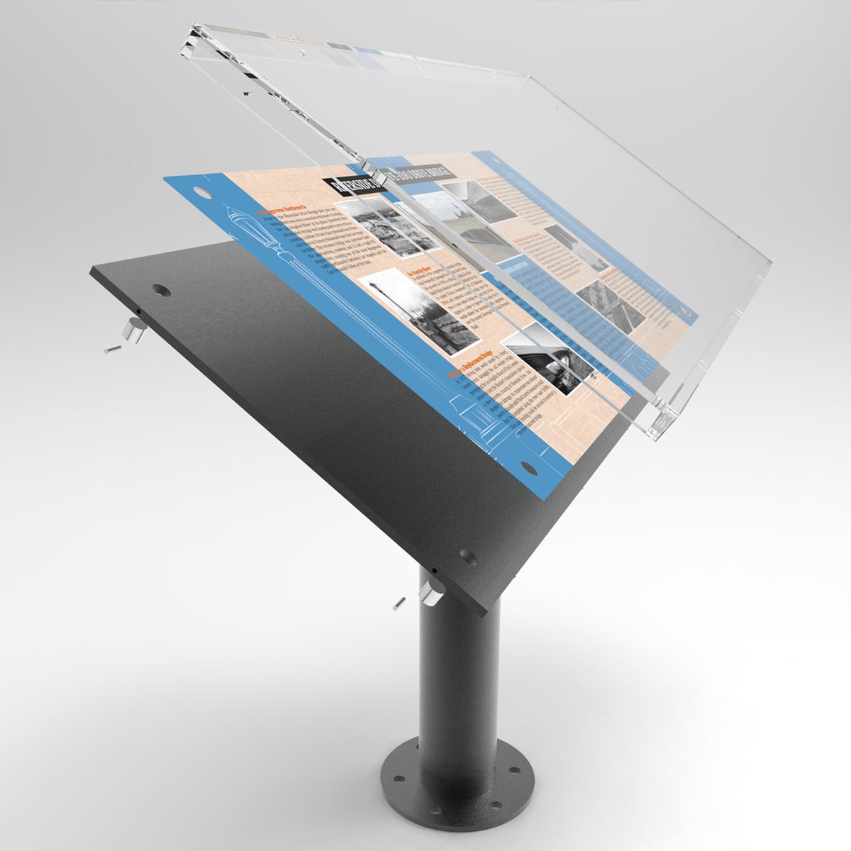 Powdered Coated Steel, Aluminum Print & Plexi Cover.